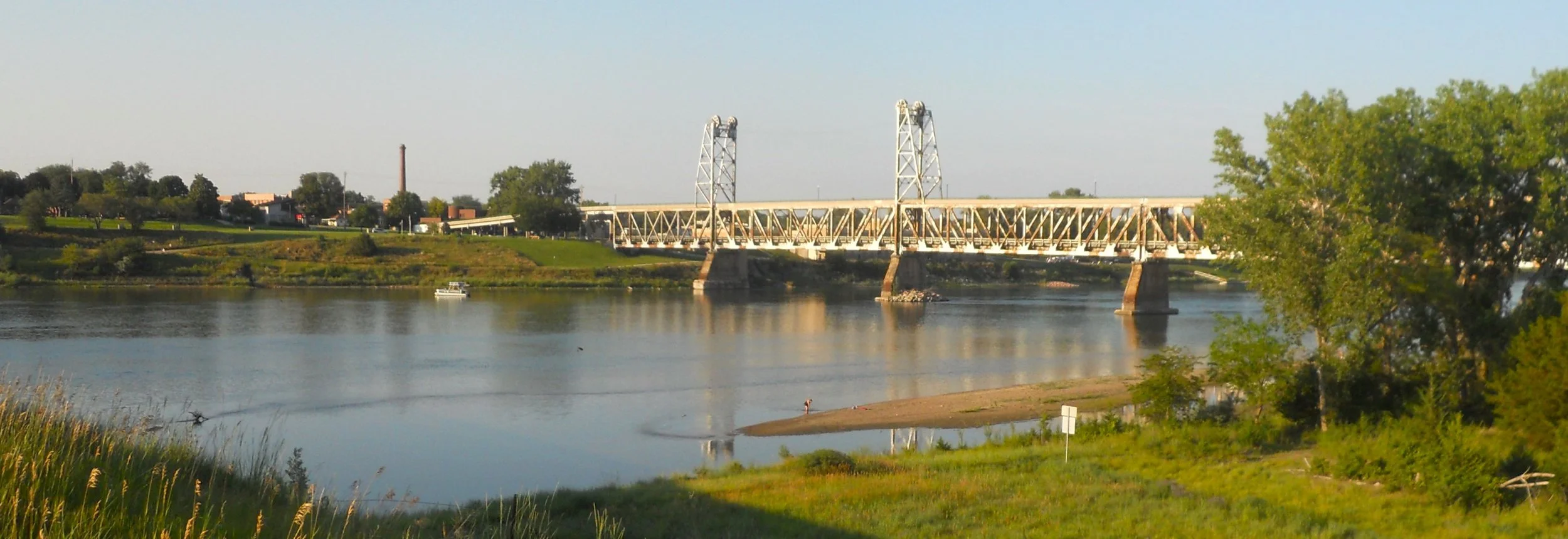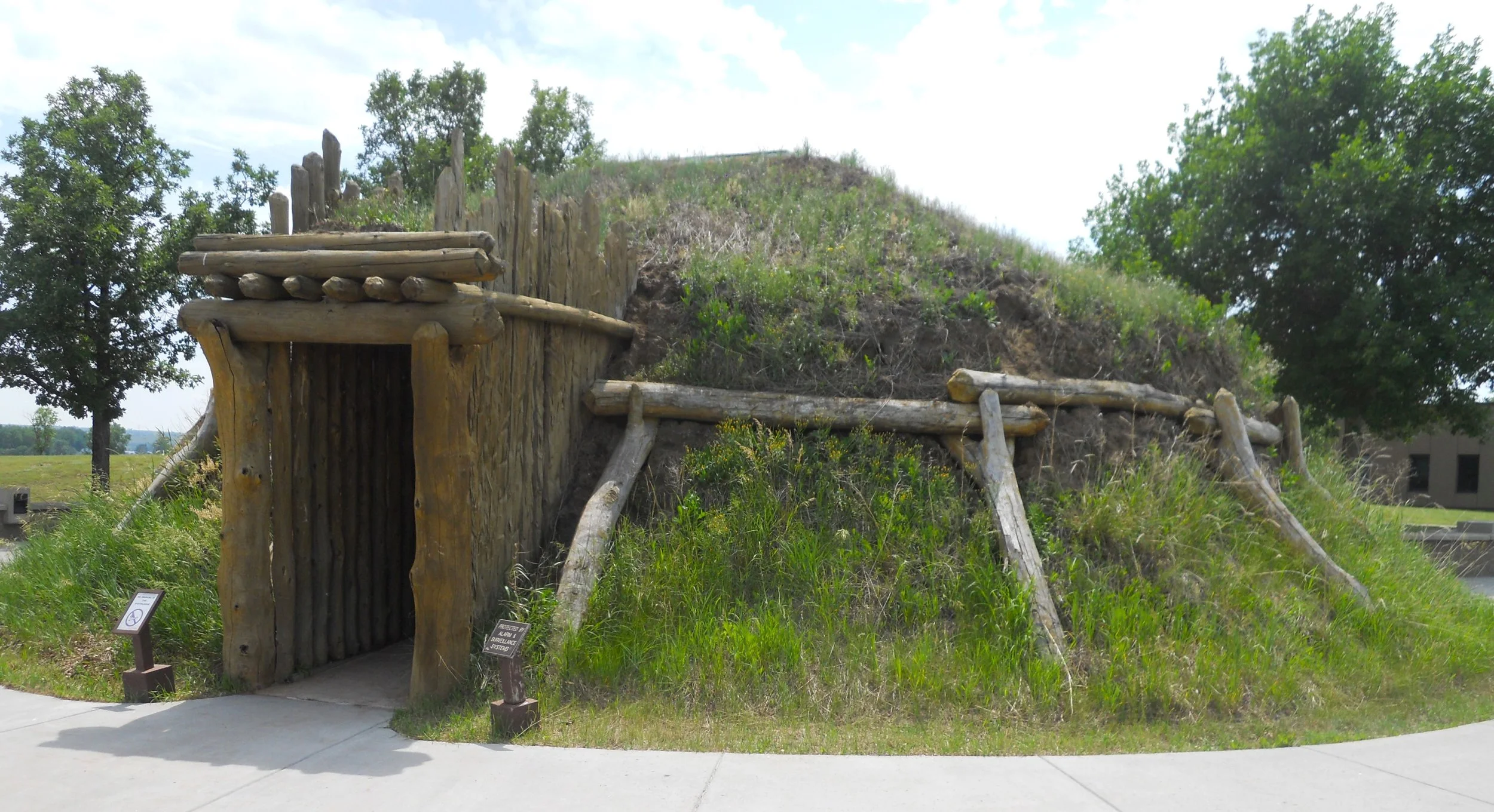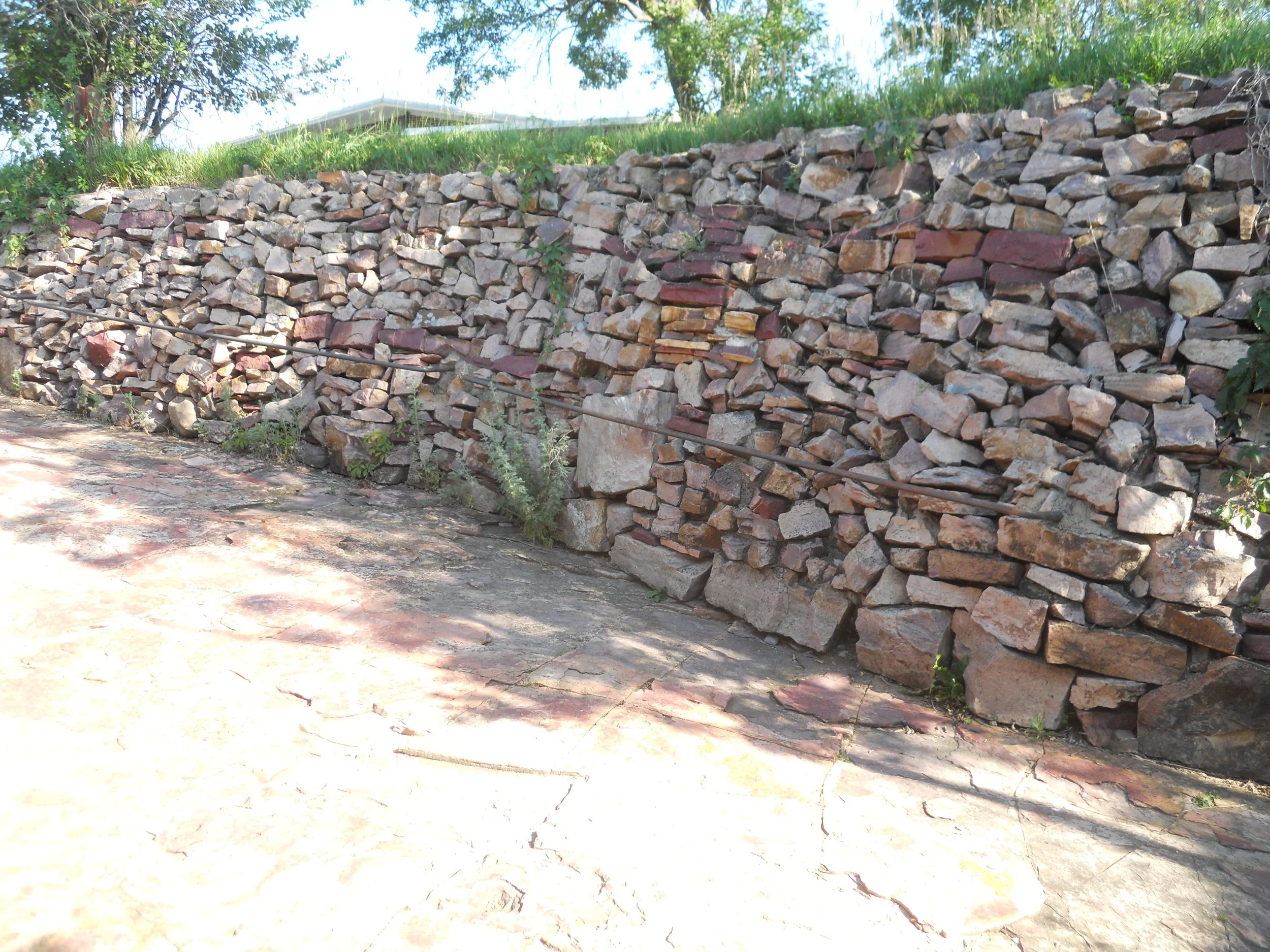 Effigy Mounds NMon preserves over 200 mounds, which sit high above the Mississippi River. Twenty native tribes are connected to this site. The mounds were built between 1400 and 750 B.P. (means “before present). Conical mounds (photo tries to show four heading down a hill) were for burial purposes. One of the largest conical mounds is at Fire Point, which overlooks the river (today there were plenty of boats going up and down the Mississippi). Other mounds in the park are mainly in the form of a bear (Little Bear Mound is bottom right photo, but hard to make it out… the raised weeds and flowers comprise the shape… the head is at the top of the photo).