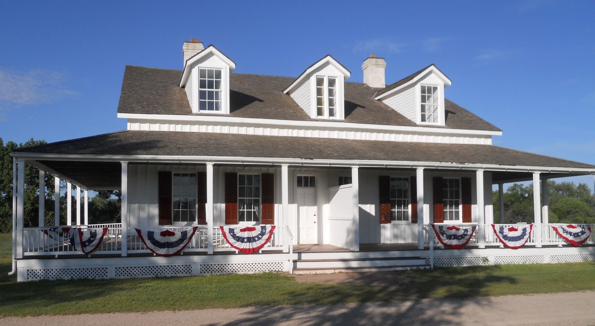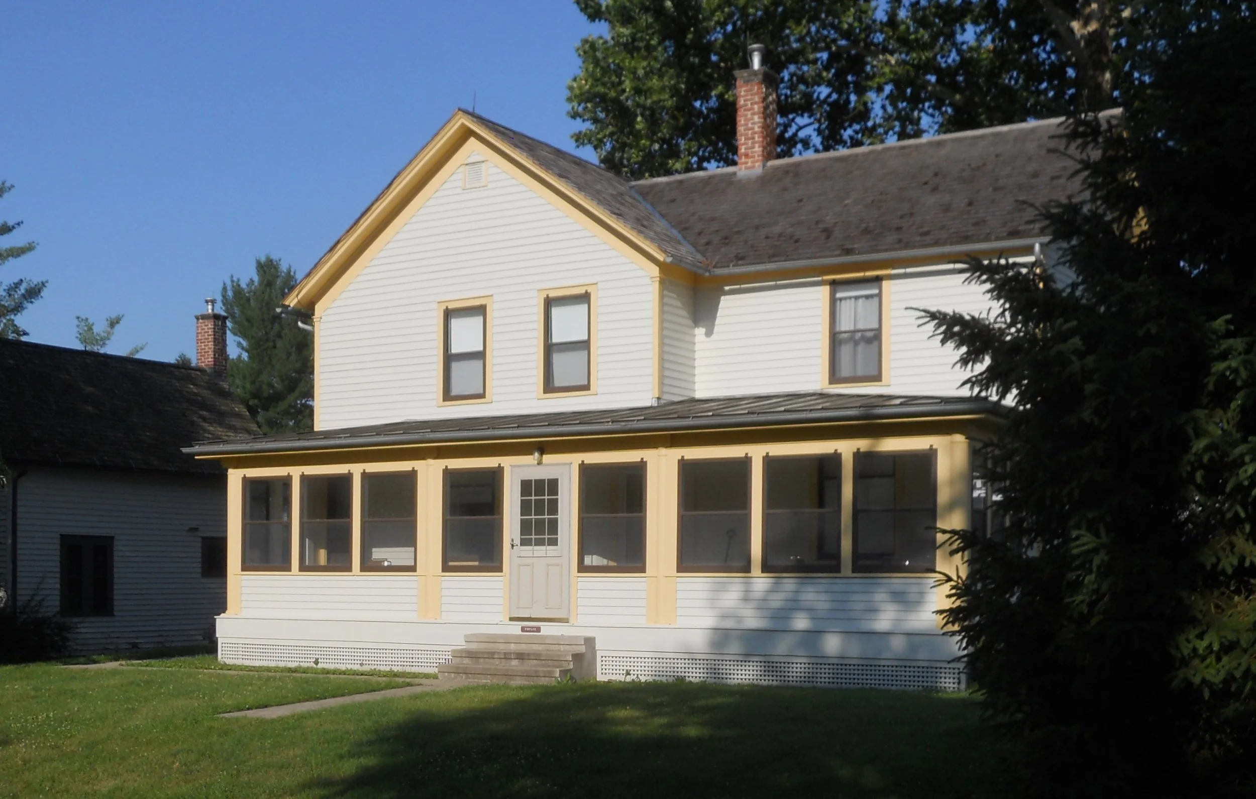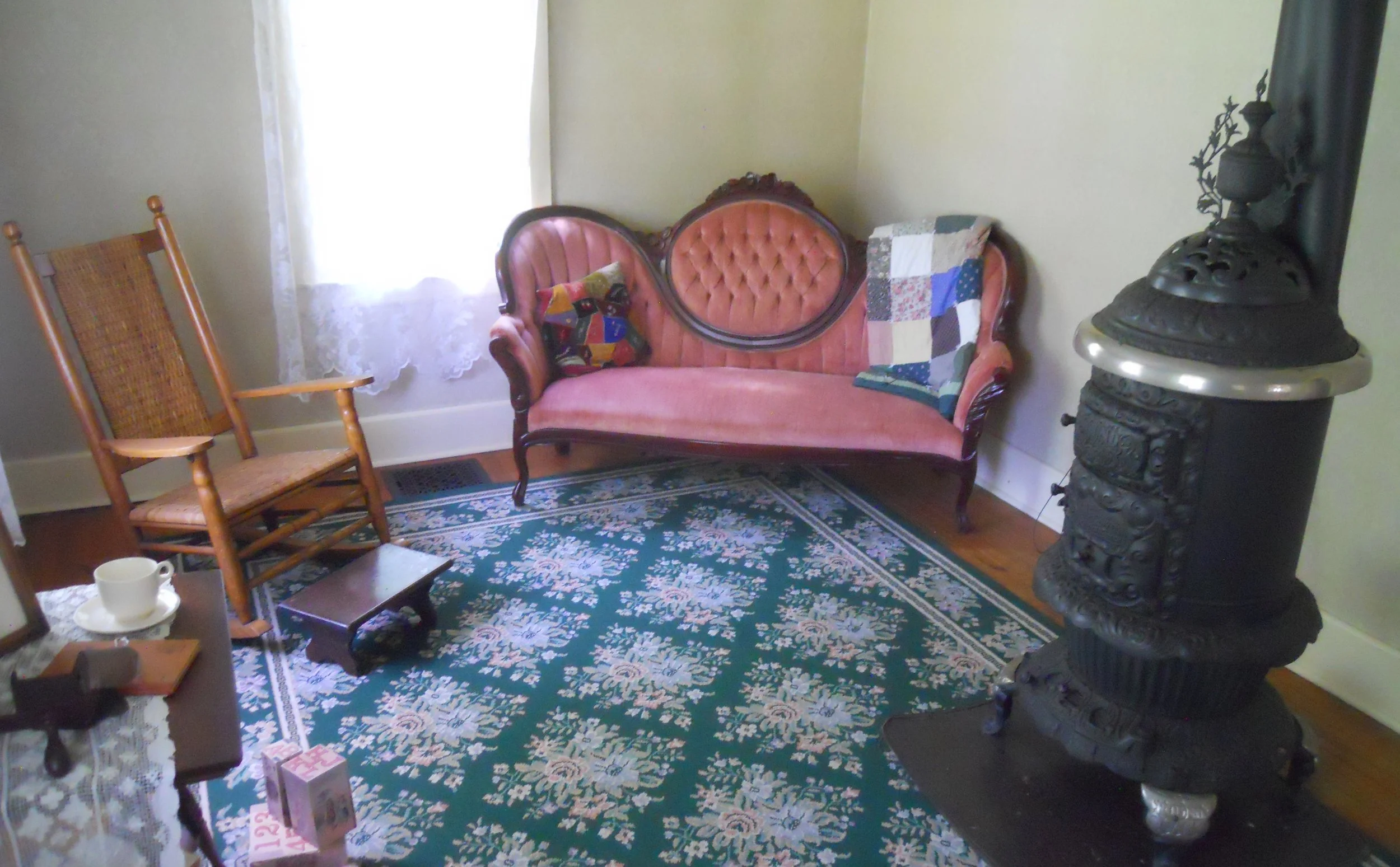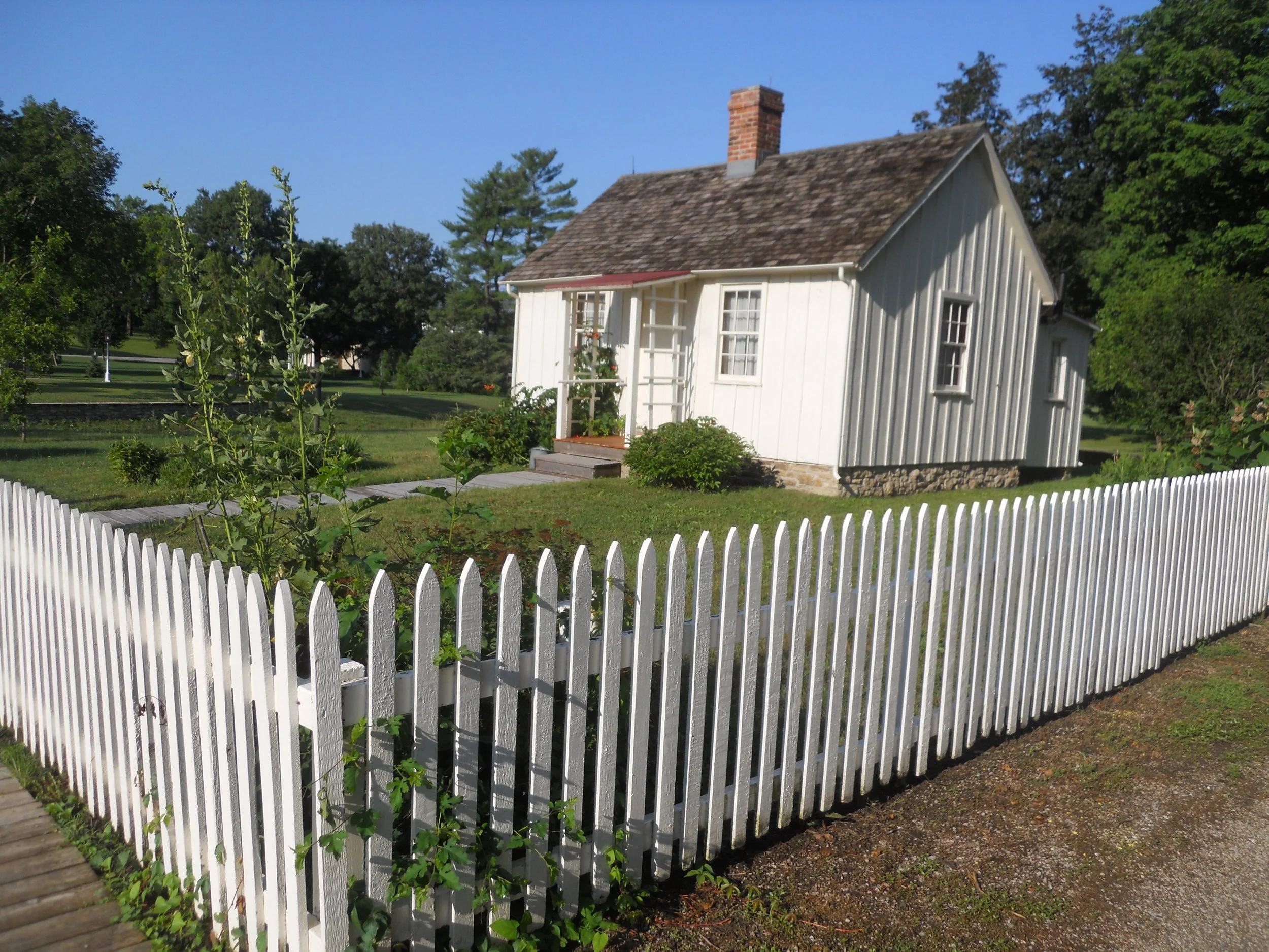 DAY 14 (July 4) - Herbert Hoover NHS is located in the serene town of West Branch, IA, right off I-80. He was born in a 2-room cottage, orphaned at age 9, and never lived there again. Later, in the 1930s, he and his wife purchased the structure to restore it to its original look. Other buildings, such as the Staples House (photo), within the park have been preserved to provide an 1870s experience for visitors. The Hoovers are buried at the west end of the park. The VC displays items used by Hoover when he was a toddler (craddle and high chair… the quilt and rug are reproductions).