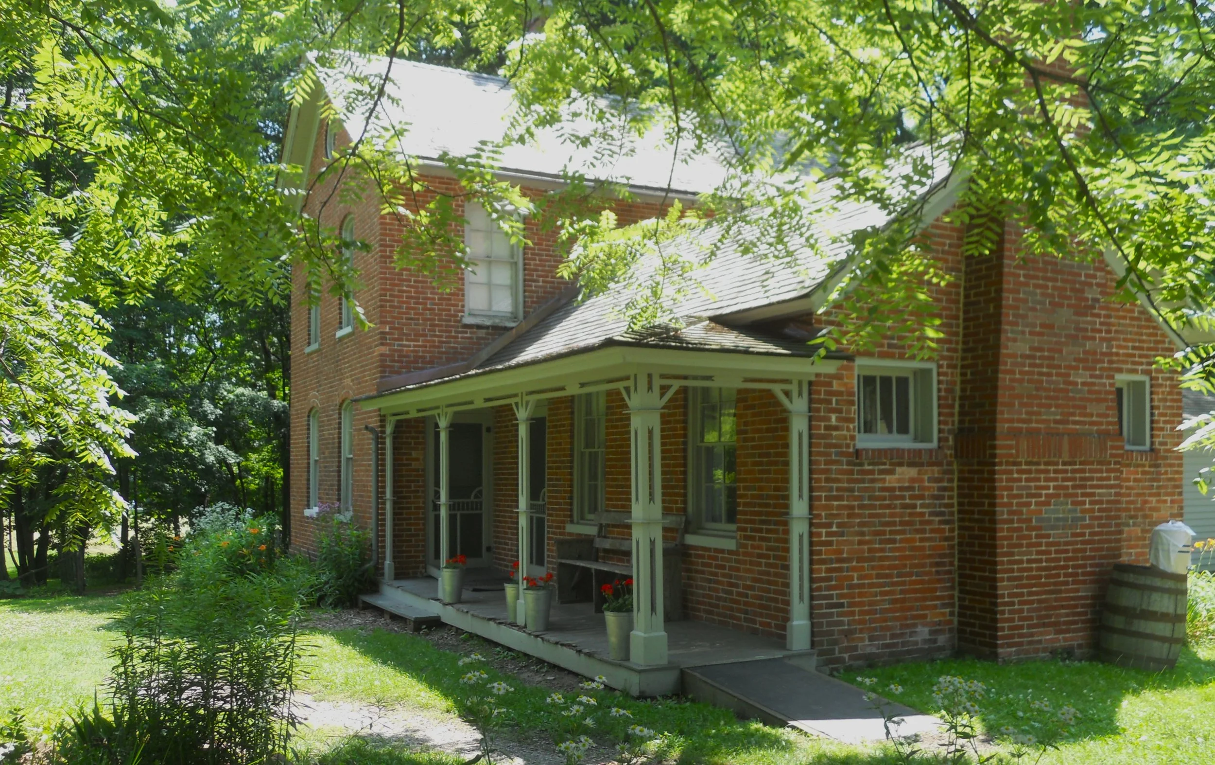 Indiana Dunes NP was packed beyond belief this day, with humans. A three-hour wait to get a parking spot at the beach, or one could walk 1.5 miles, one-way, from open lots. The VC has unique seating benches. A site which did not have many visitors was Chellberg Farm, a portion of the park I had not previously toured. The original wood home had burned down in 1884, replaced in 1885 by the current brick structure. This meant the family had to live in their barn for one year. The interior of the barn is all original wood, dating to 1870. The NPS still raises chickens and cattle at the farm. The house is furnished with period items.
