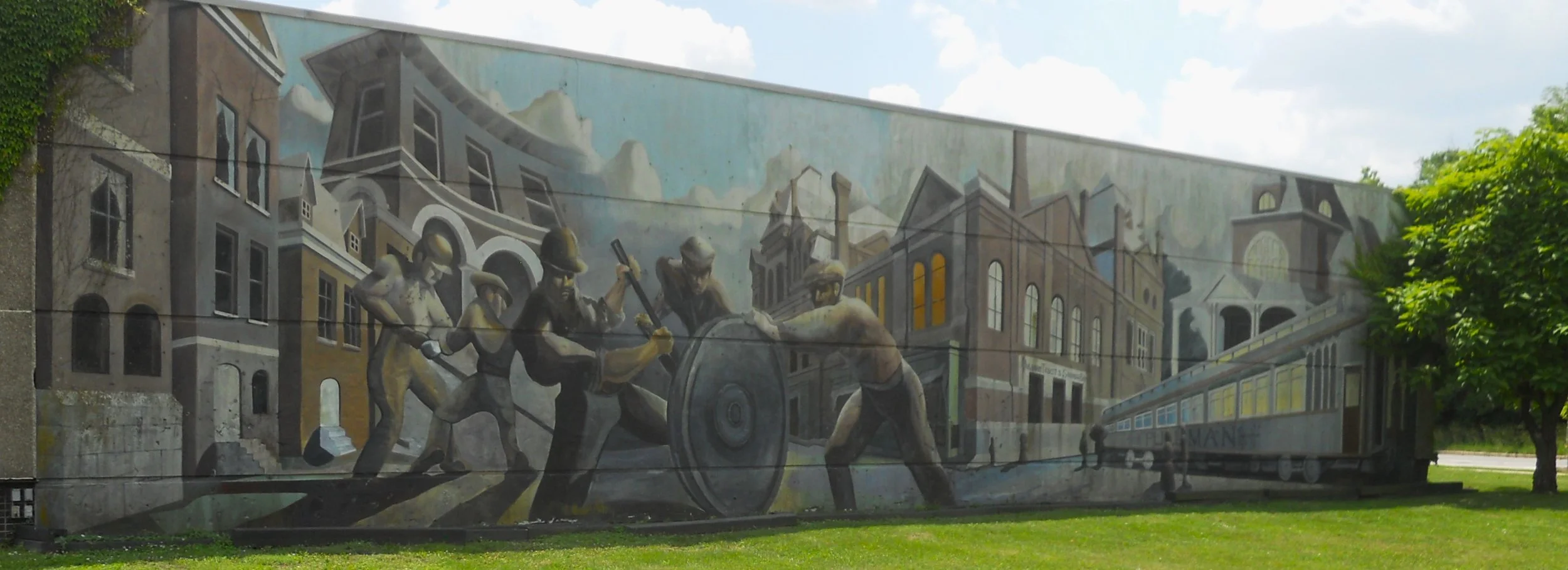 Pullman NHP honors the legacy of the Pullman Company. This was a planned manufacturing complex and living city for the workers, who plied their skills into turning out the most luxurious railroad cars around. The administrative building is impressive (today houses the VC and museum). The one end of this structure was the Front Erecting Shop. The Rear Erecting Shop is not in as good a condition. The Hotel Florence, across the street, is undergoing renovation. Aside from building the famous cars, Pullman supplied the world-class service labor to keep passengers comfortable. One of my favorite murals in the national parks is on the backside of the original VC.