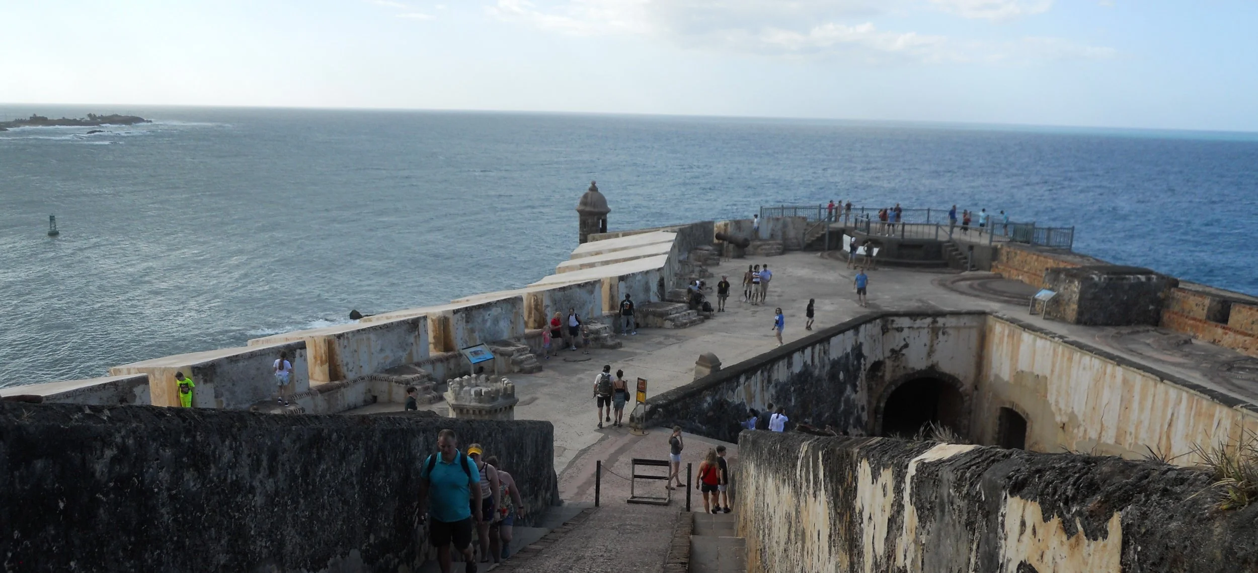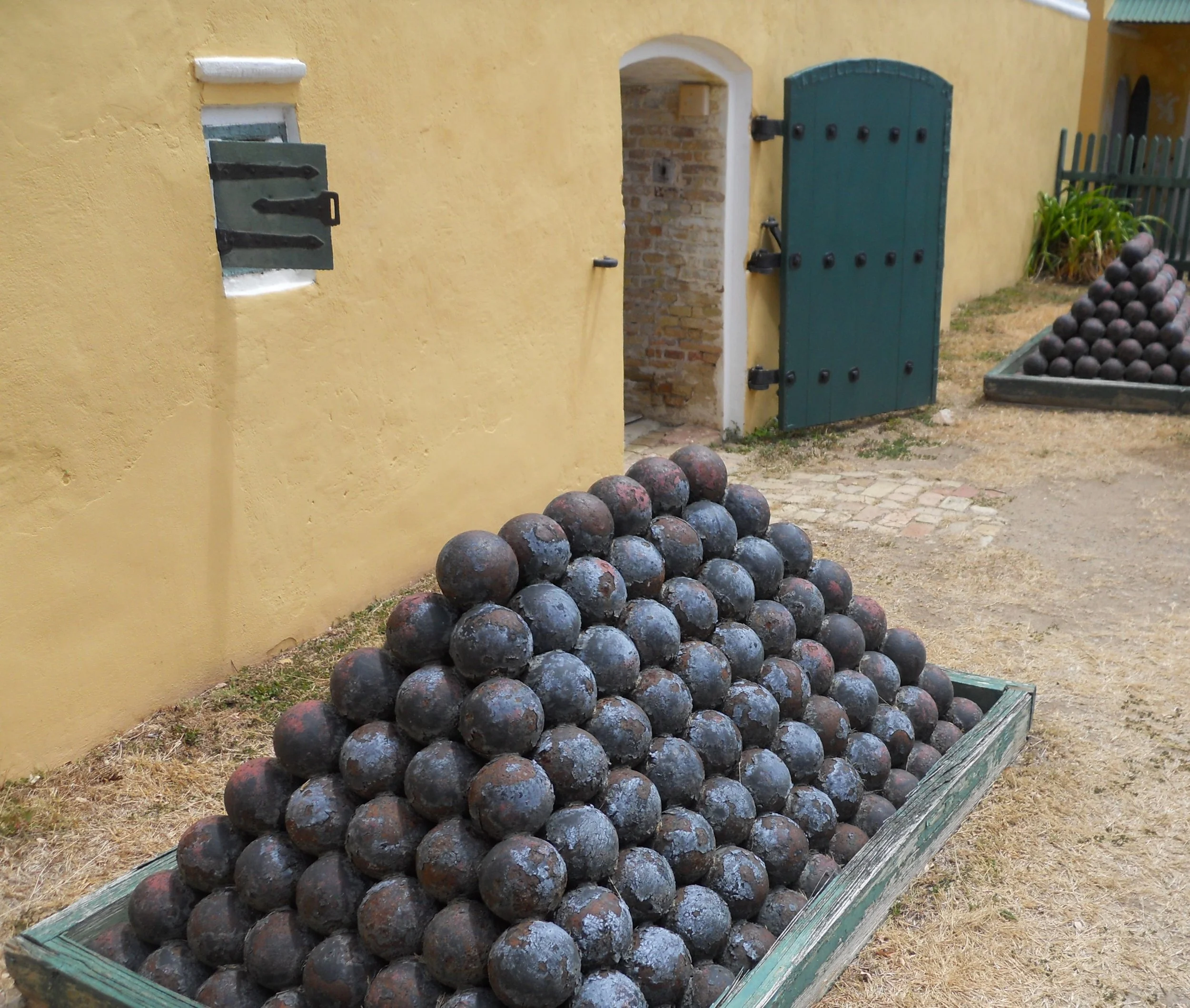 Fort Christiansted is in need of repairs (as are many of the structures in the NPS). Ranger Evan said new monies have been made available, but the process to get contractors and finalizing planning, can take some time. The courtyard is in the one photo, while the door to the ever-important Powder Magazine is in the other. Cannon are placed on the top of the fort. The first Lutheran church in St. Croix (circa 1750) is also a part of the NPS unit. The scale in the Scale House can be viewed. Every slave from Africa passed through this Scale House to measure his or her weight.