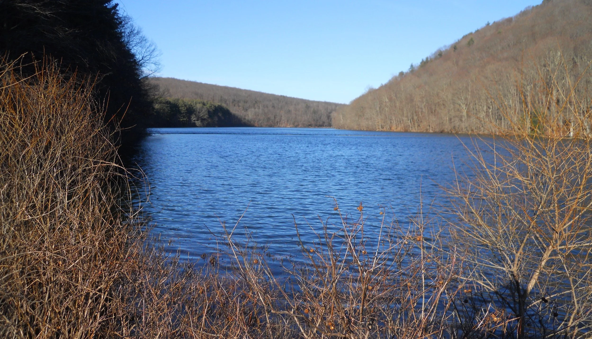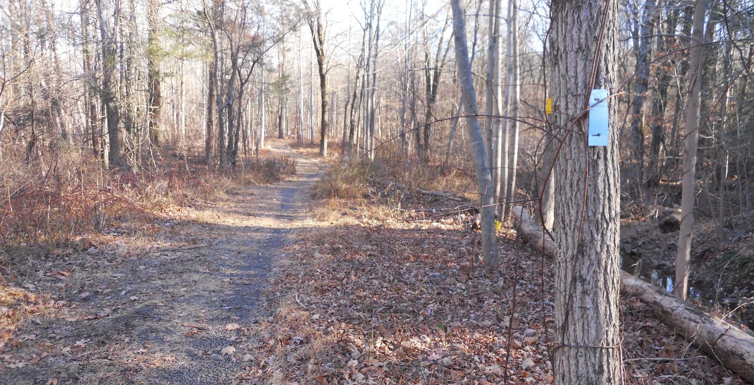 DAY 3 (December 15) - The New England National Scenic Trail (NET) runs the full height of Massachusetts and Connecticut, for 215 miles. The trail is a mix of public and private lands. Some sections are on roadways. I stopped in the Merimere Reservoir and the Bradley Hubbard Reservoir sections, south of Hartford for a couple of short hikes. The trail while in CT has blue tags (white is in MA). Someday I will walk on segments in MA.