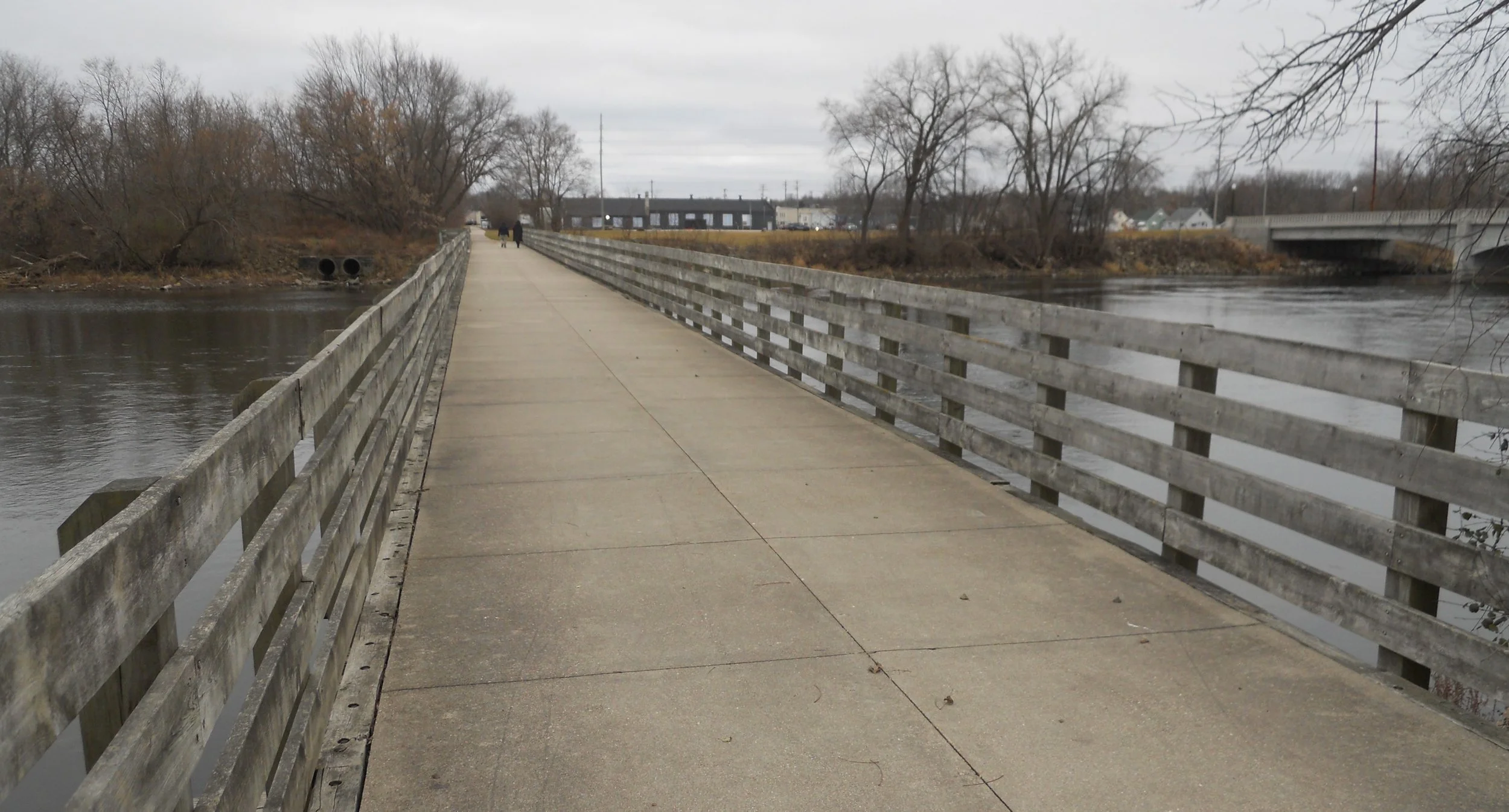 DAY 2 (December 10) - An 8-hour drive had me in Janesville, WI, to walk on the Ice Age National Scenic Trail. This Wisconsin-only trail was added to the National Trails System in 1980. The length is 1,100 miles… just look at the one sign. The S. Jackson St. walking bridge crosses the Rock River. This is one of the “urban” sections of the trail. Quite interesting to be in the middle of a city and following sidewalks to stay on the path (little yellow arrows on brown background). Other sections are just for hiking and biking.