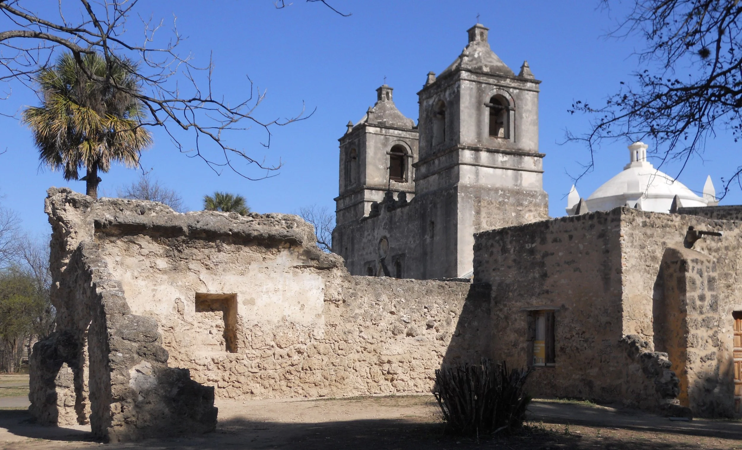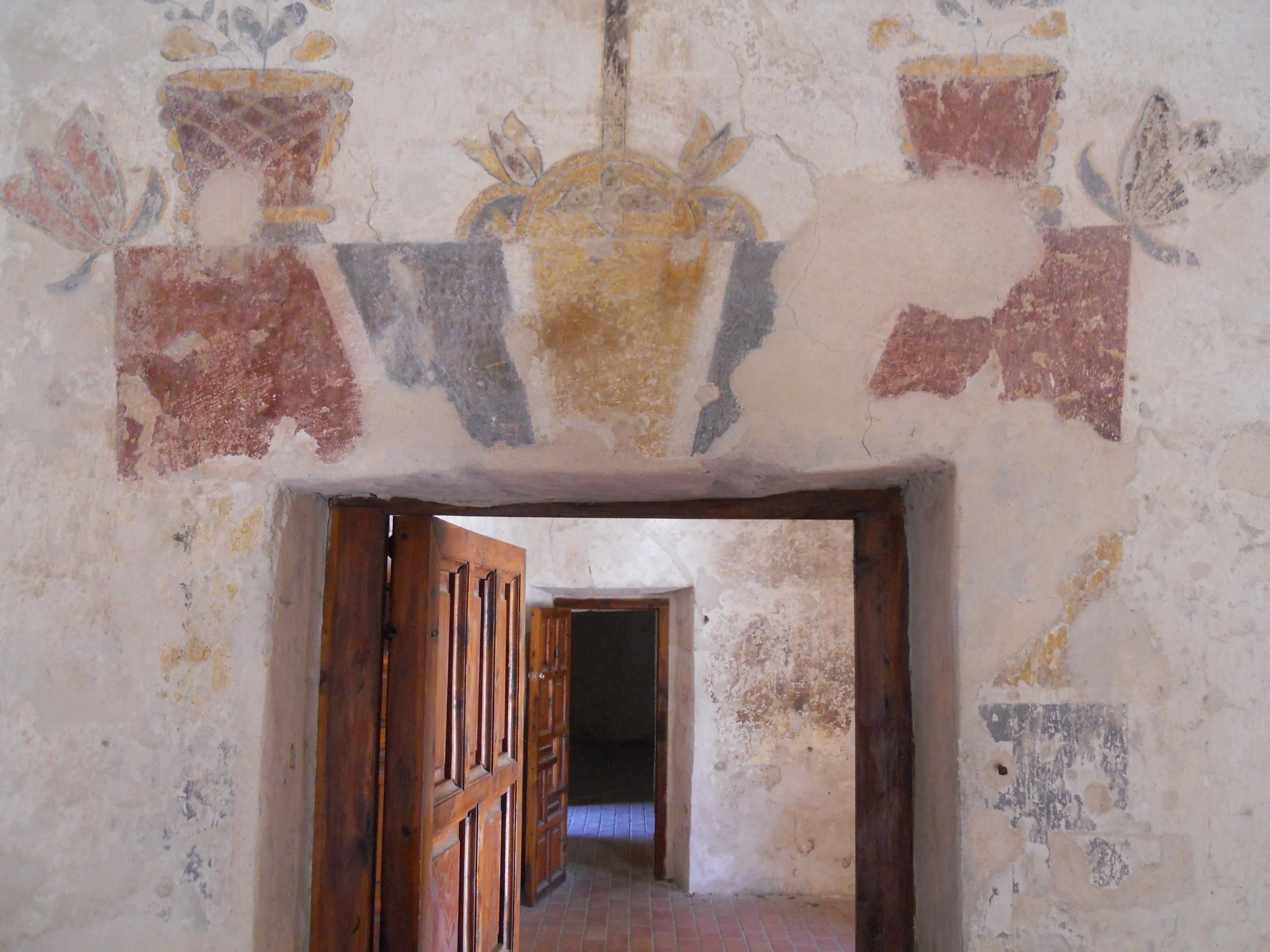The third row of mission photos are of Mission Concepcion. Original paintings on the walls are present. 90% of this structure is original.