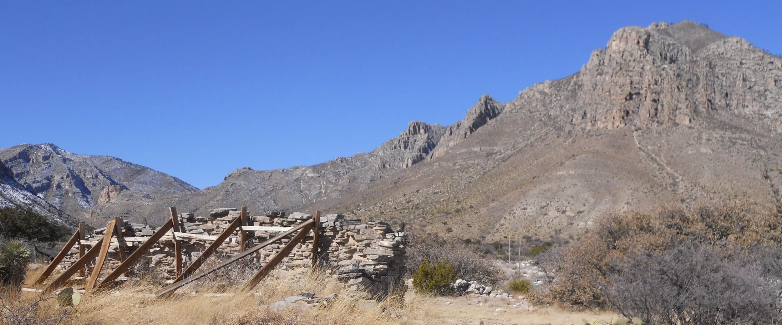 Guadalupe Mtns NP had snow covering much of the area. Guadalupe Peak (highest point in Texas) is in the center of the one photo. Ruins of the Butterfield Stage station stand in front of Hunter Peak.