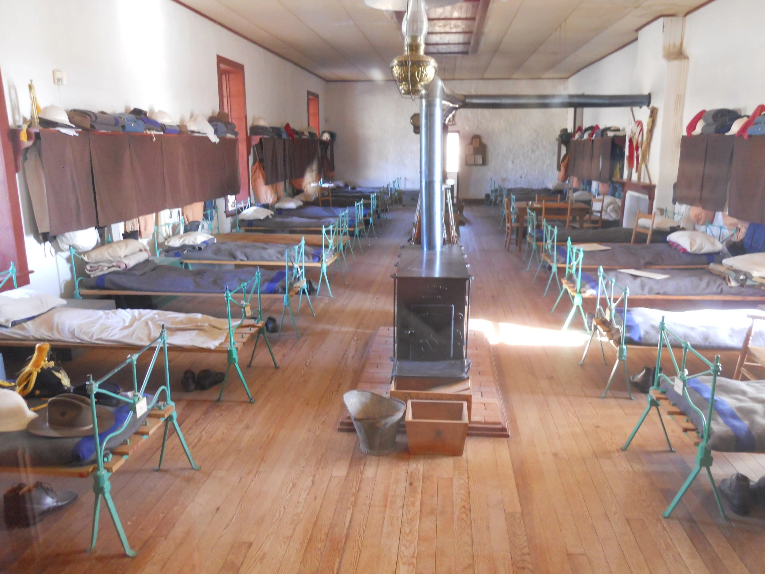 An enlisted men’s barracks (photo) shows the sparse life led by privates. Today’s soldiers have a slightly easier time. They were allowed to go to the Commissary (photo) to buy goods.