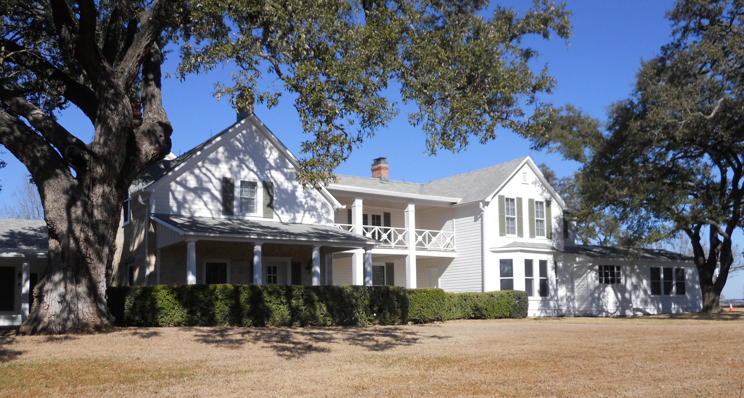 The last photo is of the Texas White House, LBJ’s home on his large ranch. He had a runway built behind the house so he could fly into and out of the ranch. The Air Force One small jet which was used while he was President, is located next to LBJ’s hanger. During those times, when the hanger was not being used for maintenance of planes, Mr. and Mrs. Johnson turned the space into a full-size theater and invited friends over to see the latest releases. Remember, no digital equipment back then.