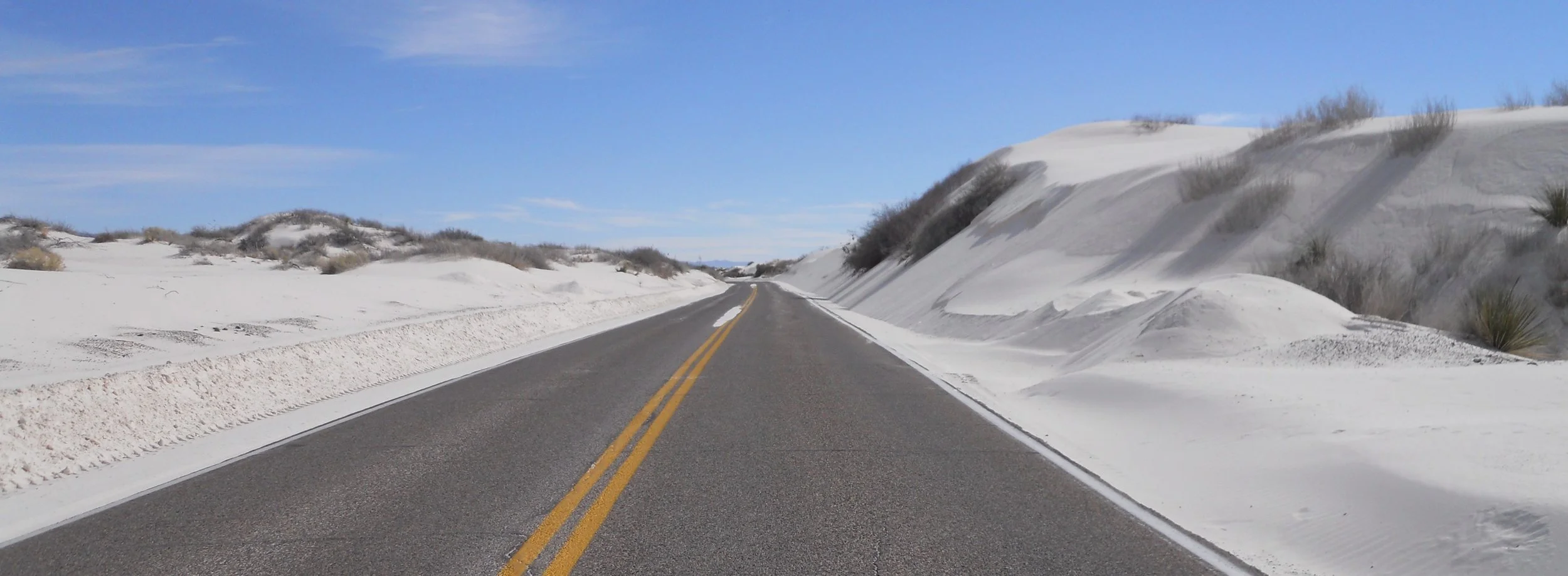 The wind in this valley can get cranking, pushing the gypsum onto the surface of the one road which traverses the park. Check the plow marks on the left-side of this photo. I have been at the park when one could not see the road.