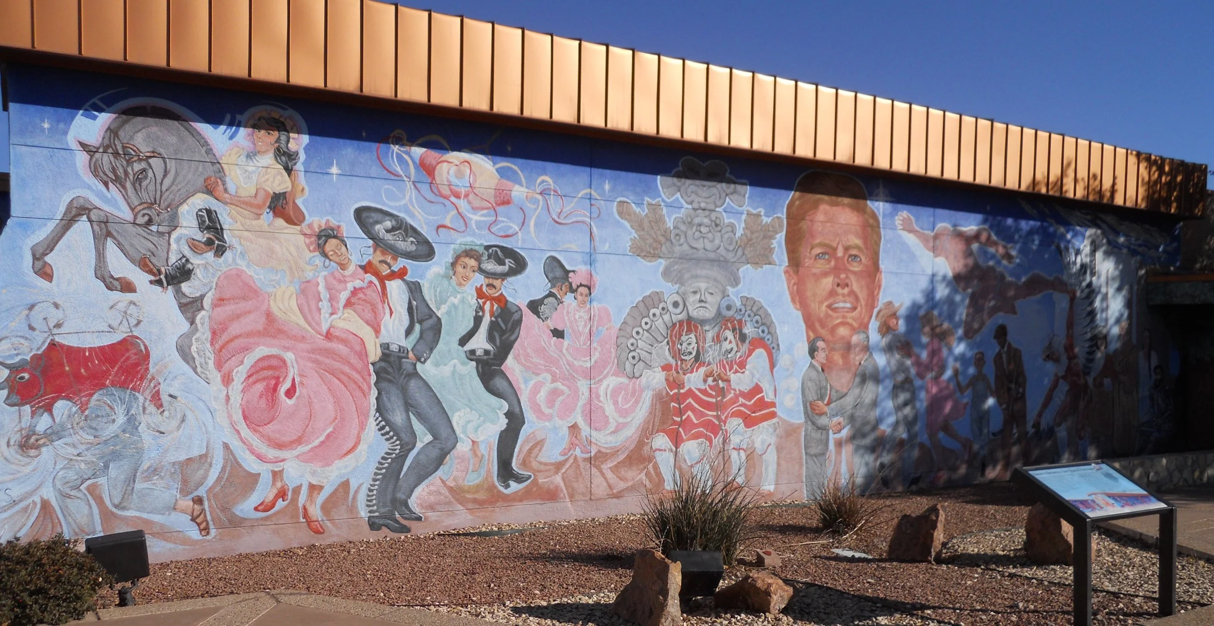 DAY 6 - The Chamizal NMem site honors the border conflict between the USA and Mexico which was resolved in 1964. The dispute began in the 1840s, since the Rio Grande River would keep changing course. The mural on the Cultural Center is “Nuestra Herencia”, or “Our Shared Heritage”.