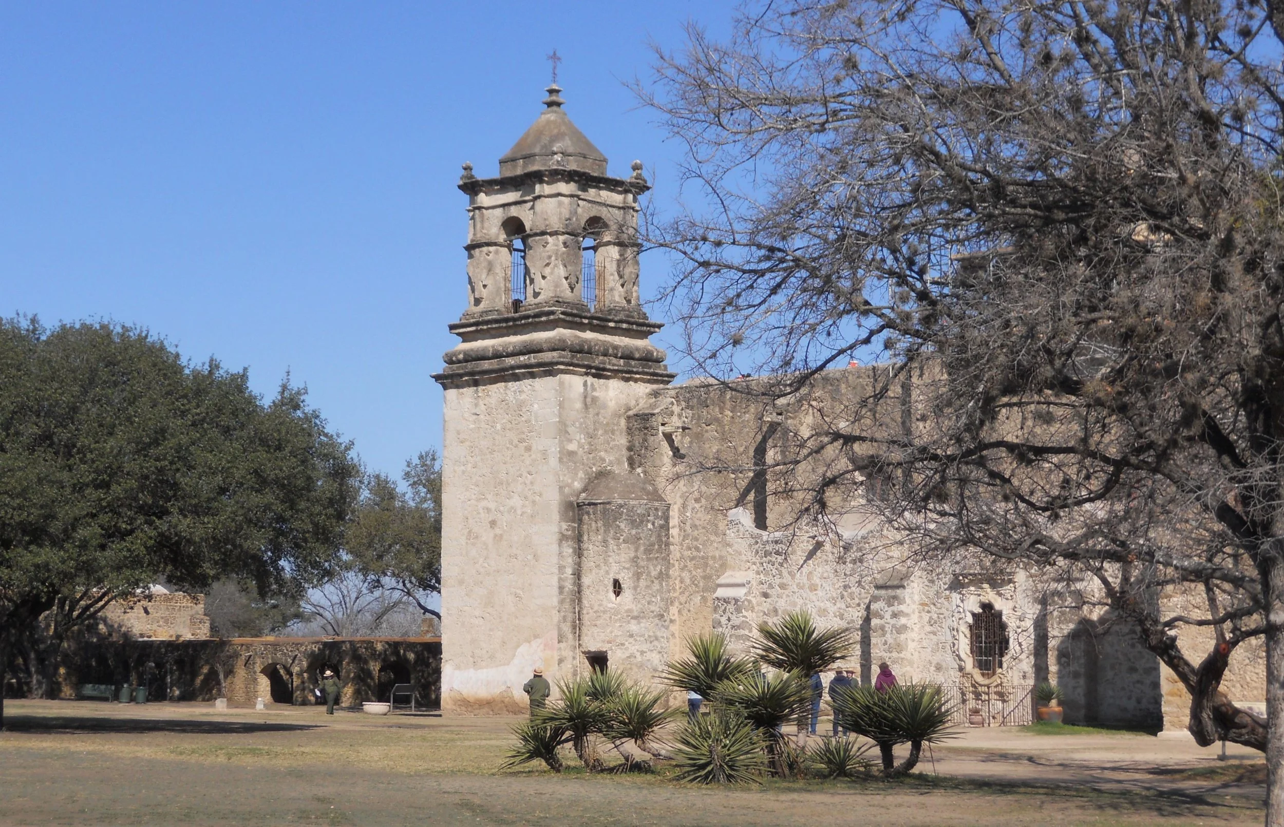 Each mission is separated by about 3 miles, along the San Antonio River. The famous Alamo was also a mission, but it is owned by the city, so is not able to be part of the NPS park. Mission San Jose was next (far right). You can tell the building materials were different.