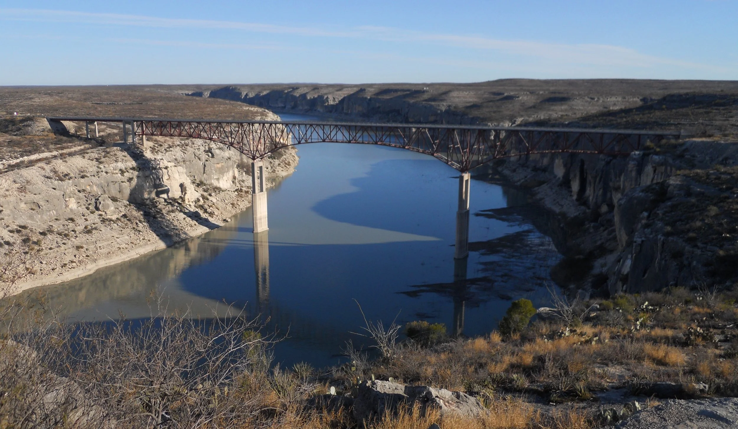 DAY 4 - Amistad NRA is a large body of water which butts up against Mexico. There are boundary buoys through the center of the Rio Grande River portion to remind folks which side of the water they are on. The two bridge photos are of the main bridge by Del Rio and the Pecos River bridge further west. Jack, a ranger at Amistad, mentioned the 1144.3 foot rule. This is the elevation water would be at for “subject to inundation level.” With the water at this height, the shoreline which would be impacted is what makes up the NRA “boundary”. Therefore, the park reaches well upstream on the Rio Grande, and the Pecos River.