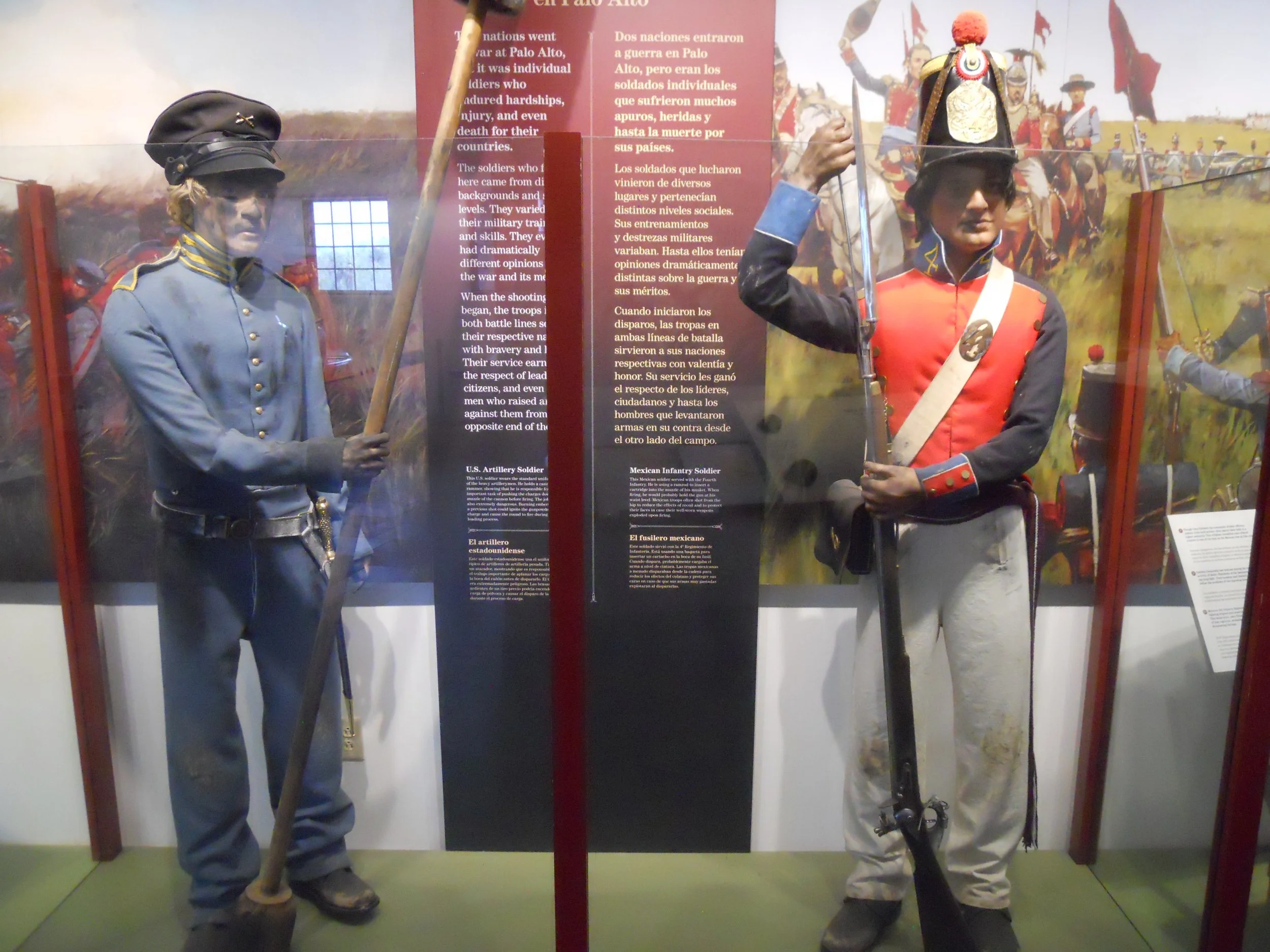 Next stop was Palo Alto NB. This was the first battle in the Mexican-American War of 1846, the war that changed the face of the Western Hemisphere. General Zachary Taylor (future President) faced off against Mexican General Mariano Arista. The superior cannon of the U.S. Army led to a victory. The one photo shows three cannon on the U.S. battleline (Texas Republic flag), one mile from the Mexican battleline.
