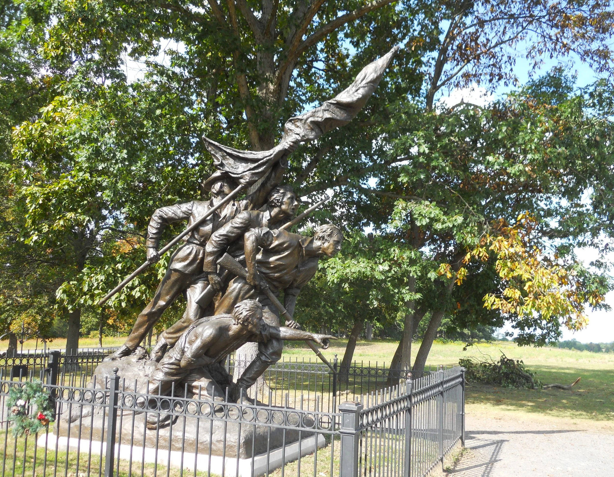 Manassas National Battlefield Park was the site of the first major skirmish of the Civil War. Henry’s Hill was the focal point of July 21, 1861. A replica of the Henry’s house stands on the original site. Behind the house is one of the oldest Civil War monuments on any battlefield, the Bull Run Monument. Union troops who fought here erected the monument a few weeks after Lee’s surrender in 1865. The famous Stone House survived both Manassas battles. The turning point of the first battle was on the Union’s right flank on Henry’s Hill. The cannon in the photo is positioned at the spot. In trying to attack the Confederate left, the two assigned cannons came too close to the Rebel lines, allowing the Confederate infantry to overrun the position and push forward against the Union right. Retreating Union troops rushed across the Stone Bridge back to Washington. A replica of the Stone Bridge stands where the first bridge did.