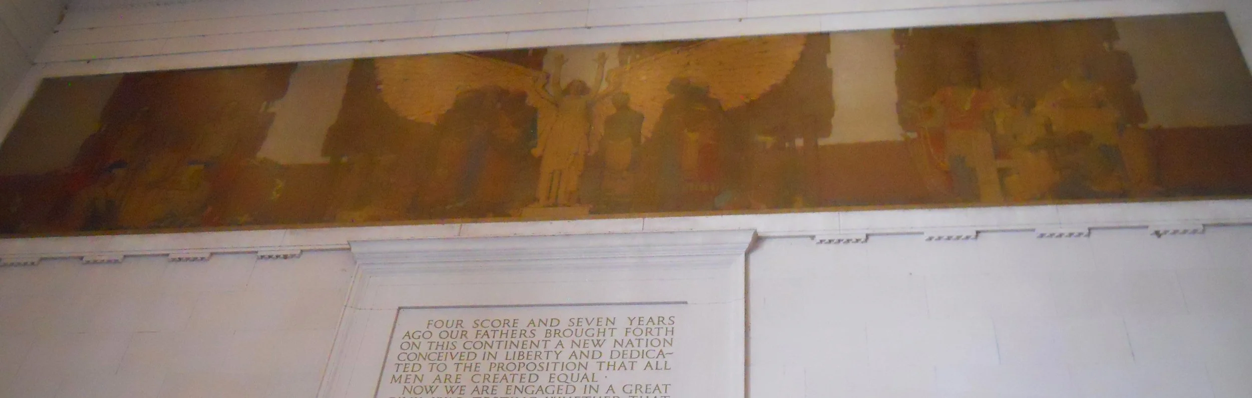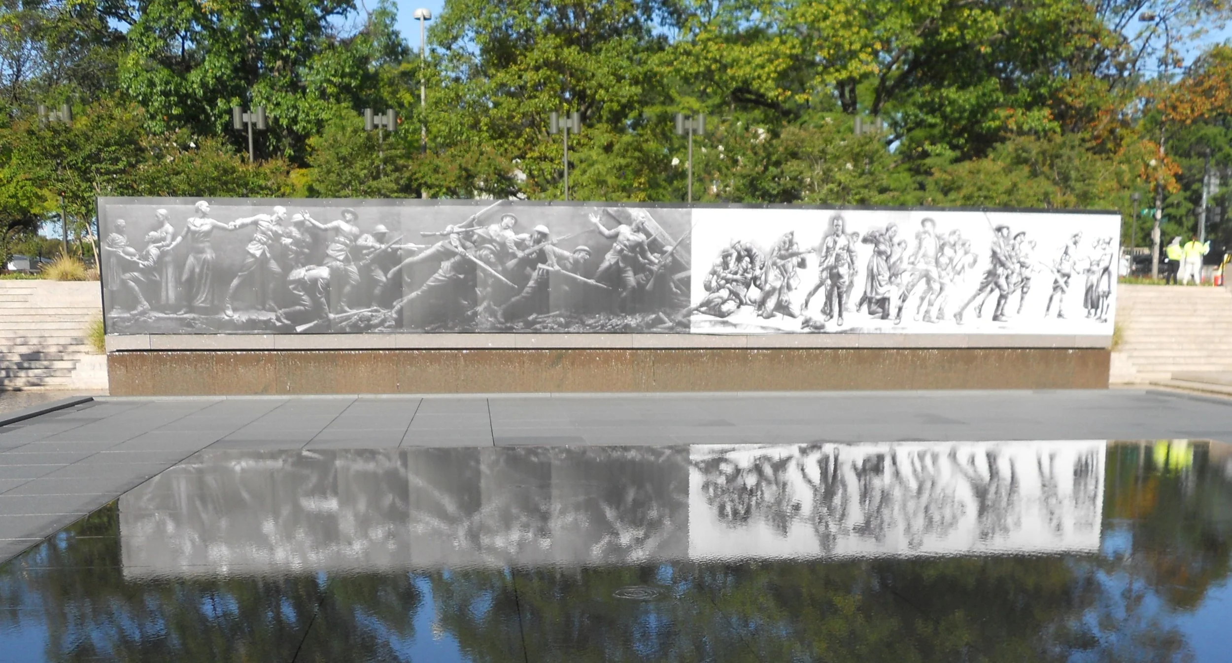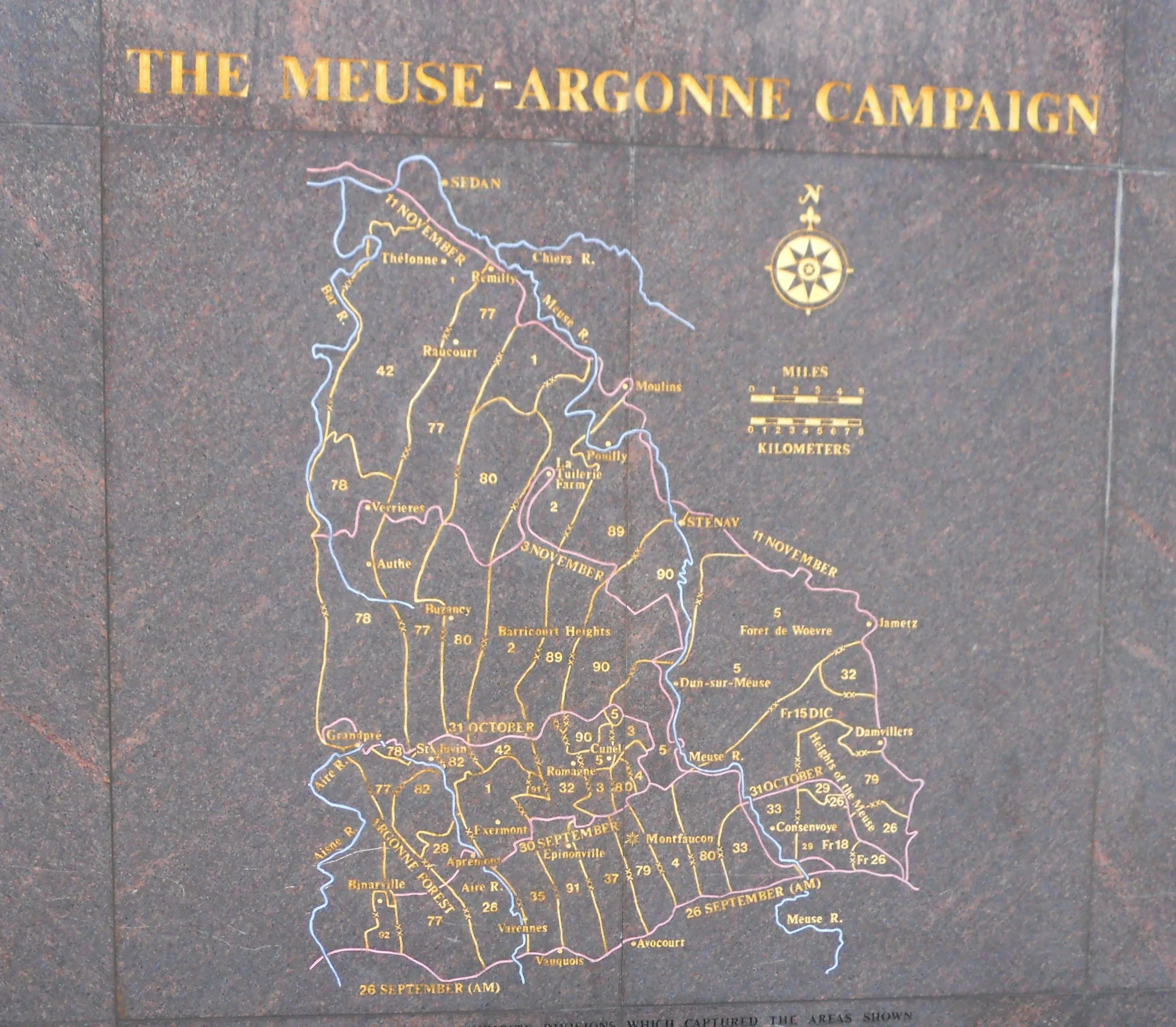DAY 3 (September 14) - The World War 1 Memorial looks much different than the last time I visited. The gold etching of the Meuse- Argonne campaign is still present. One of my dad’s uncles was killed during this offensive. Uncle Edgar was in the 4th Division (center and bottom). But “A Soldier’s Journey” illustration, at one end of the memorial, is new for me. The east end has a sculpture of General Pershing, though he is in the middle of some refurbishment. Over 4 million men were involved with the AEF (American Expeditionary Force) by 1918 to help the Allies defeat Germany.
