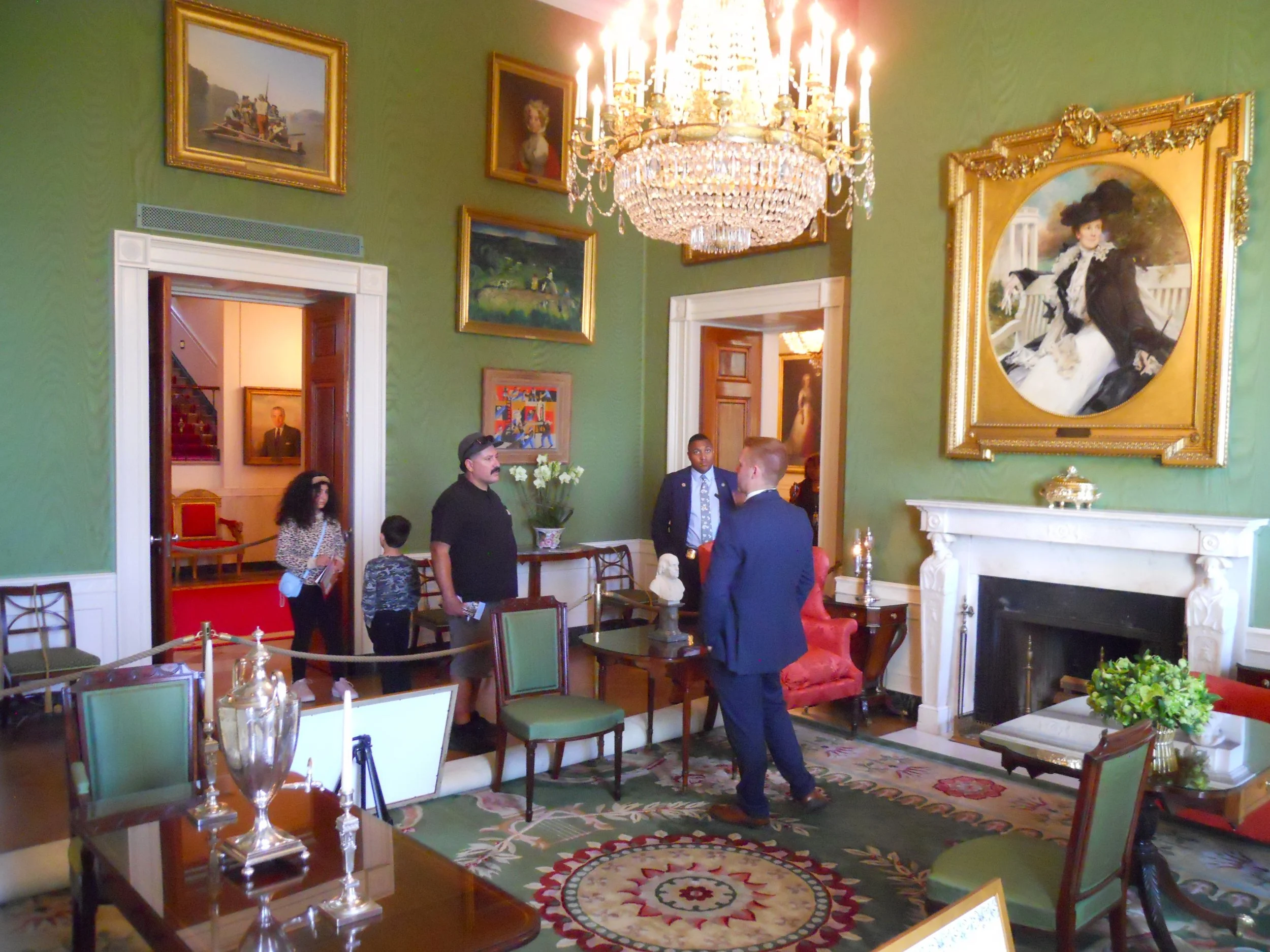 Then onto the White House VC, which is across the street from the WW1 Memorial. I met up with Humberto, a fellow NPTC member. He is closing in on 380 parks. Humberto asked a park ranger what land area constitutes the White House President’s Park. The ranger had a stack of sheets with the answer. No need to take an inside tour of the WH to officially state you have visited this park. But we had tour passes, so we walked over to the entry point near the Treasury Department building. First security checkpoint was to be sure we had a pass for this date. Next checkpoint was to look at our official government IDs (aka driver’s license). Then another checkpoint which included xray scanning of our personal belongings. Still photography, without flash, is allowed in the WH. The tour starts in the East Wing, also known as the First Ladies Wing. The official portraits of the First Ladies hang from the walls. The Library and China rooms are then viewed. The East Room is the largest room on the entry floor level. It looks the way it did from the 1902 renovation by President Roosevelt. This room holds the famous Gilbert Stuart painting of George Washington (left side of the photo on the far right), the only remaining original object from when the WH was opened in 1800. First Lady Dolly Madison had the painting removed before the British burned the building during the War of 1812. Then, of course, there are the Green, Blue, and Red rooms. You may notice some of the rugs are rolled up. Tours end at 12:30 PM (only held five days a week) followed by a crew of six people removing the tour ropes and unrolling the carpets in just 15 minutes. The last room on the tour is the State Dining Room, with a portrait of Lincoln looking over the table. What an experience. A Secret Service agent said Mrs. Biden is known for walking in the halls of the East Wing and will pass visitors and say “hi”. President Biden rarely goes by the tour route, though the agent said if he wanted to he could, since it is his home.