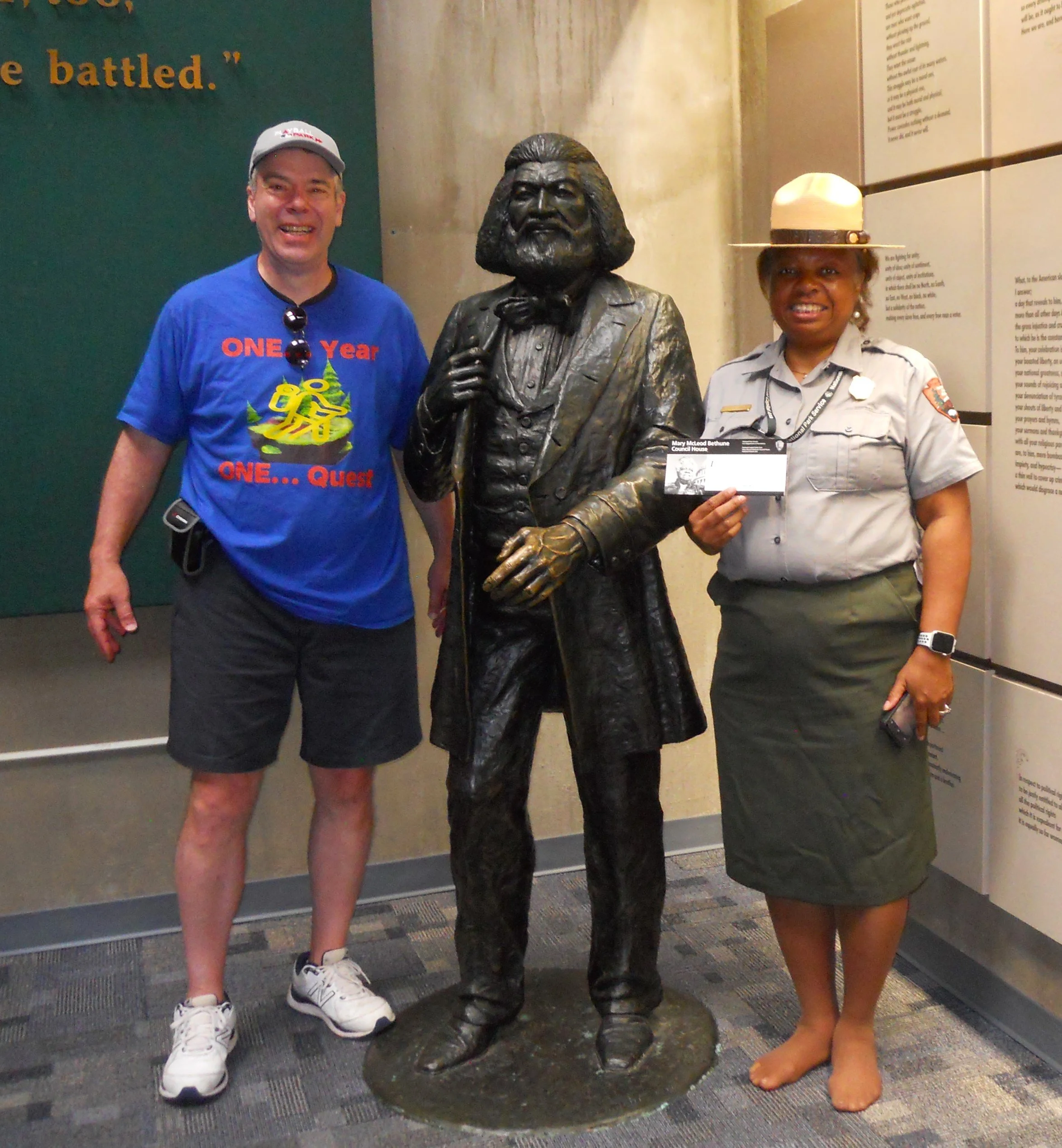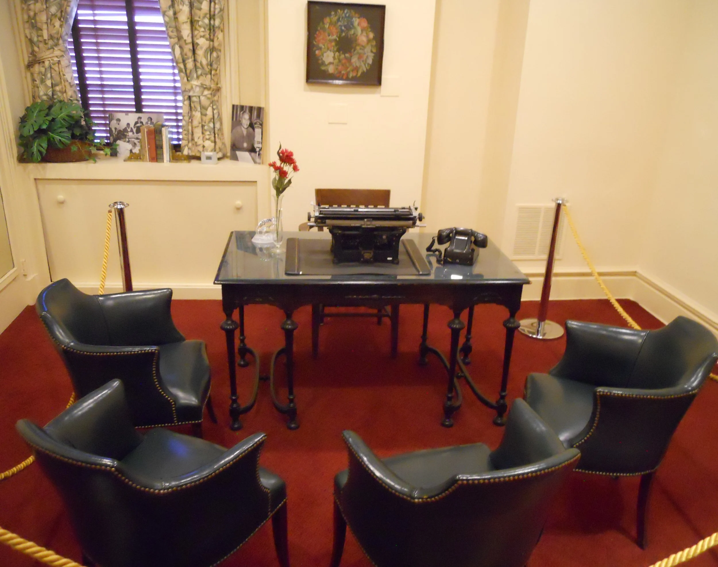 A 0.8 mile walk had Humberto and me at the Mary McLeod Bethune Council House, ready for the 11:30 AM house tour. This was one lady who, as the ranger said, would get in your face. Equality and Justice were not being served for the African-American community and she worked tirelessly to change that state. She lived in this house for six years before moving to Florida. The house continued as the headquarters for the NCNW (National Council of Negro Women). Five enthusiastic history and national park buffs were on the tour with Humberto and me. They had a copy of First Ladies by Marie Benedict and Victoria Murray, a fictional story about a First Lady and a Civil Rights Leader. Does Eleanor Roosevelt and Mary McLeod come to mind? Hmmm. They are now headed to more national parks, counting towards the 425 like Humberto and me. The house does have McLeod’s desk and conference table and chairs. The table/chairs were a gift from Illinois Congressman Dawson, a friend of McLeod.